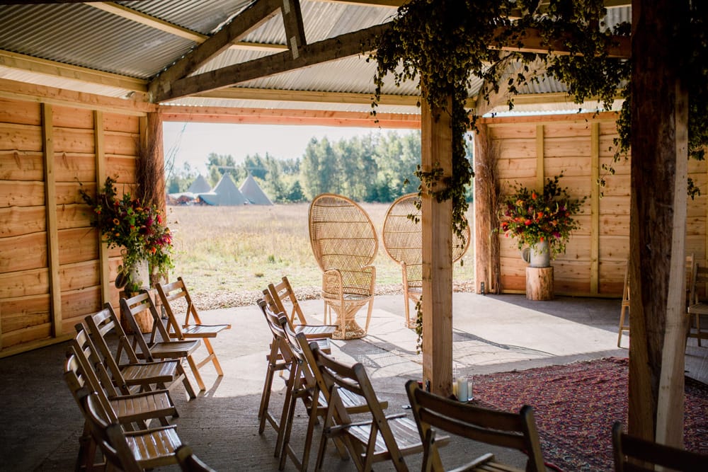 When booking a woodland wedding venue, carefully consider your wedding date. May – September is generally the most popular time of year for an outdoor wedding as you’re more likely to have warmer weather but it’s not guaranteed. If you love the idea of a romantic autumn affair in the great outdoors or the thought of a winter woodland wedding is making your heart flutter, it’s still possible! Fforest is an outdoor venue for all seasons – you can celebrate in the sunshine amongst the wildlife and woods, or you can wrap up warm and roast marshmallows around the firepit in the autumn.