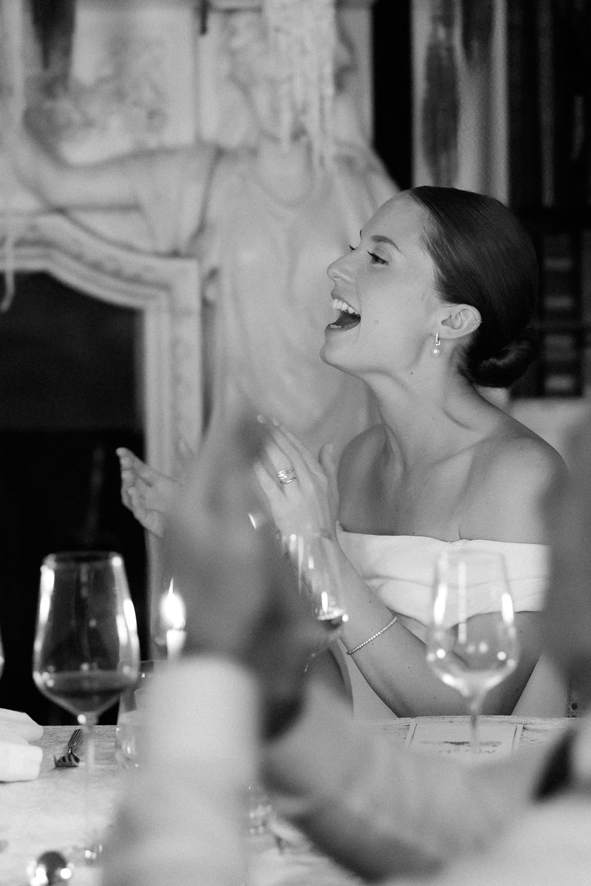 Don’t get me wrong—I love a wedding speech, but unless the speaker is a stand-up comedian, please keep the above in mind and limit the number and length of speeches (between 5 and 7 minutes per speaker is the perfect amount of time).
