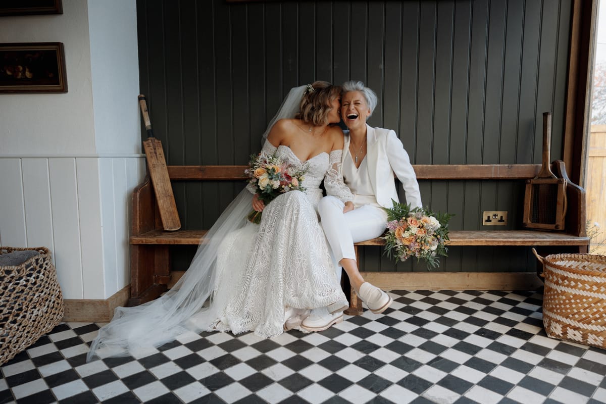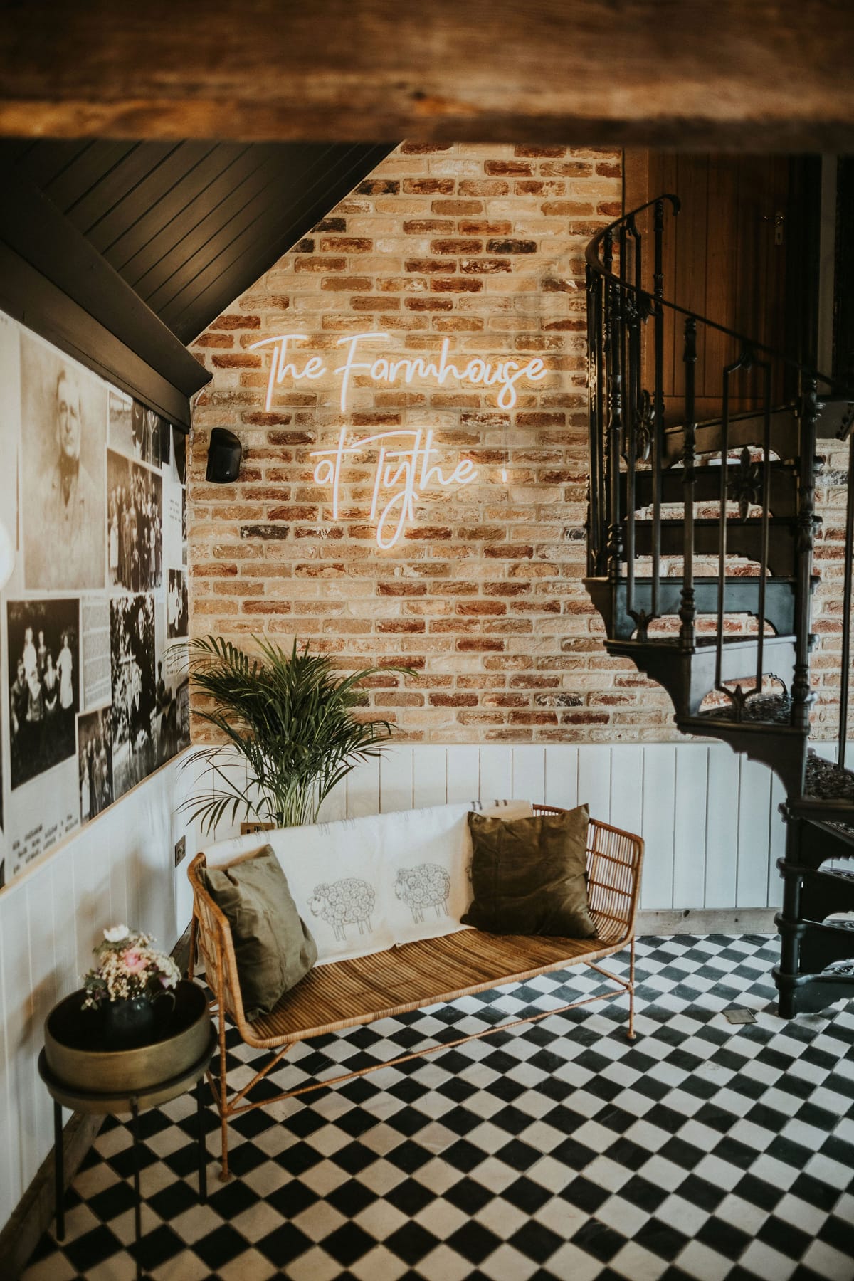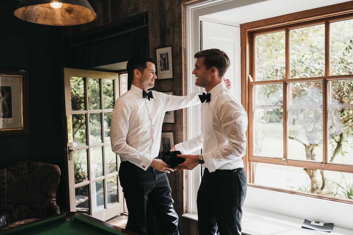 On the morning of my wedding, I got ready at our home, but I wish I’d had a dedicated space (or two!) on site. We offer a variety of getting-ready spaces at Tythe for both wedding parties. The Farmhouse dressing room has a large makeover area with its own Champagne station next to the main honeymoon suite. Or, for total privacy, brides can check into The Nook, a standalone converted barn with its own en-suite, hair and make-up area and a relaxing dressing room with all the space you need for you and the girls to get ready. It’s often a real highlight of the stay, and having not had it myself, I can see why. Our grooms are well catered for with the decadent Court Room offering a relaxed setting, luxuriously kitted out with rustic wood-panelled walls, leather armchairs, a drinks trolley and a vintage pool table! 2025 will also see the launch of The Lodge – an additional space dedicated to the groom and his groomsmen.
