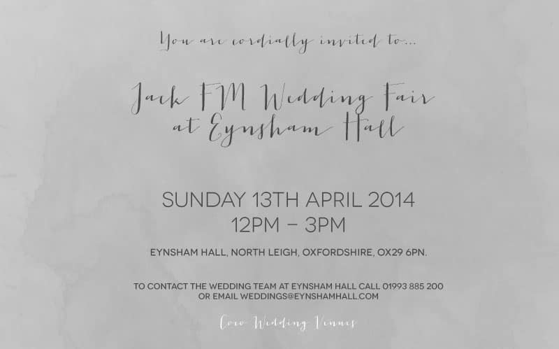 Yes, the lovely team at Eynsham Hall are hosting a Wedding Fair on Sunday 13th April 2014 and the gorgeous Rachel has all the details below…