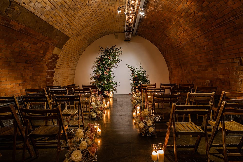 We try not to put any restrictions on what couples can do in the venues. We welcome couples to really customise the venue. You can hang decorations from the industrial lighting truss, the walls, you can put down carpets, staging, anything goes really. Candles are also welcome throughout the venues, as long as the flame is inside a glass.