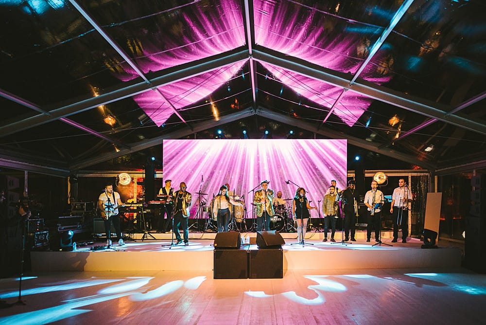 Your quote will have a breakdown of how much every element costs, depending on where your wedding is taking place etc. You can choose your band line up from an 8 piece upwards, and then how much production you would like to add (sound and lighting is included within our prices, but everything can get bigger!).