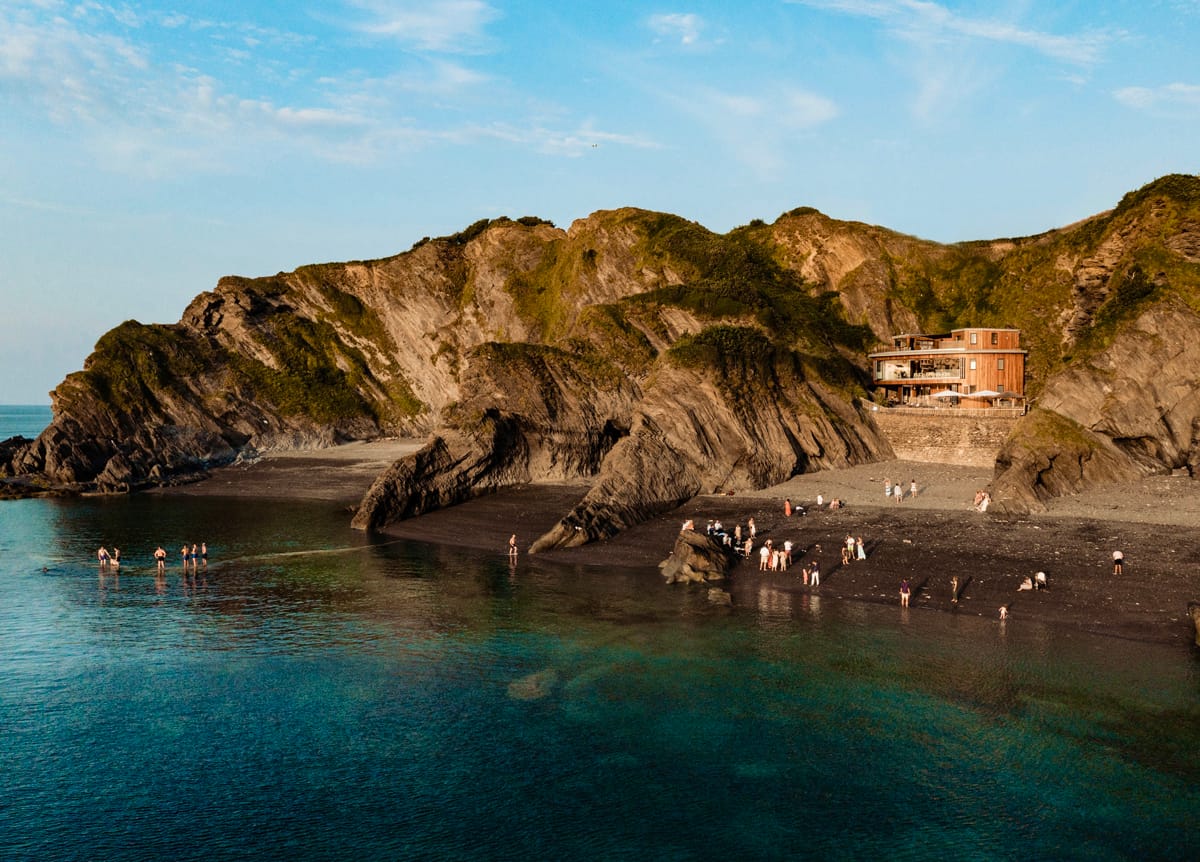 Tunnels Beaches is one of those venues that looks like something out of a dream—and a drone photo just doesn’t do it justice. Accessible through a hand-carved tunnel from the seaside town of Ilfracombe, North Devon, this hidden gem reveals a private beach surrounded by rugged cliffs, tidal pools, and dramatic coastal views. The glass-fronted venue lets you soak in the stunning scenery while keeping things stylishly contemporary inside.