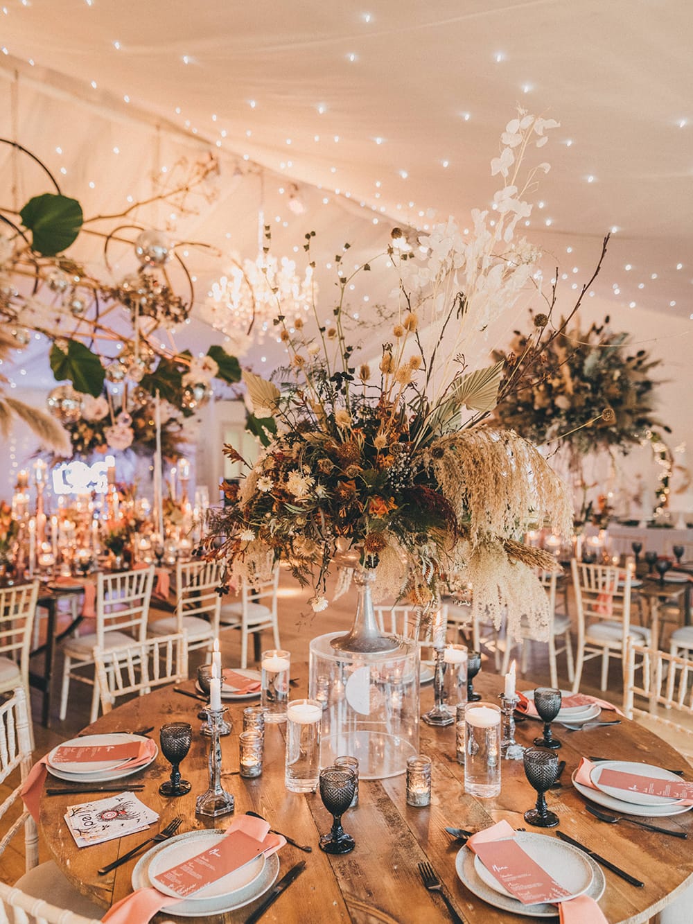 After having children, owners Kesri and Paul moved from London to the country, buying a beautiful 16th Century Farm in 2010. They converted the buildings into cool, contemporary spaces and cottages, taking inspiration from their travels over the years. “We converted the farm into an organic farm (as we are passionate about how our food is grown and feel farms can help with climate change if farmed the right way). The food we grow feeds our onsite restaurant and we cook all of our food direct from the fields or locally sourced where the food has been ethically grown,” Kesri and Paul explain. From South Africa, they incorporate lots of lovely touches as a nod to their roots, including super stylish safari tents. “Our couples are foodies and the food (all cooked on open fires – In Africa we even cook Christmas dinner on the fire!!) is an important part of why couples book us.”