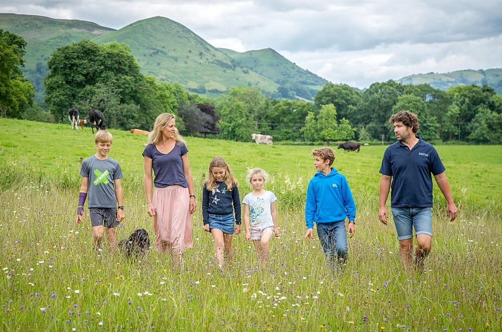 After renovating, restoring and improvements, it has now been transformed into an exclusive hire, multi day, award-winning country estate wedding venue in Mid Wales. Though they do not live onsite, their love for Plas Dinam as a family house, and the gorgeous grounds and surrounding hills has been passed to their 4 children as well as many, many guests who have stayed at Plas Dinam. Tyson’s practical (Australian) skills have been key in developing the on-site accommodation, the glass roof “Stables” party barn, and multiple improvements within the 15 bedroom house. The children are now thoroughly involved, helping with everything from mowing to setting out chairs for a ceremony. Eldrydd says, “Plas Dinam has always been a place for family gatherings, music and fun and we enjoy continuing that tradition.”