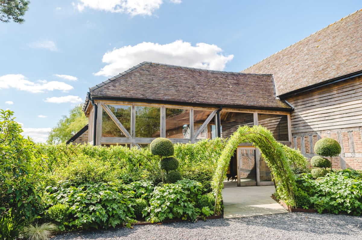 You couldn’t call Millbridge Court a typical country barn—it’s also an architectural stunner with serious style. Located on the Surrey-Hampshire borders, this light-filled venue combines traditional oak-beamed elegance with contemporary design. The Ceremony Hall, with its vaulted ceilings and vast windows, creates a breathtaking space for up to 150 guests, while the sweeping gardens and hidden fern garden offer picture-perfect backdrops, come rain or shine.