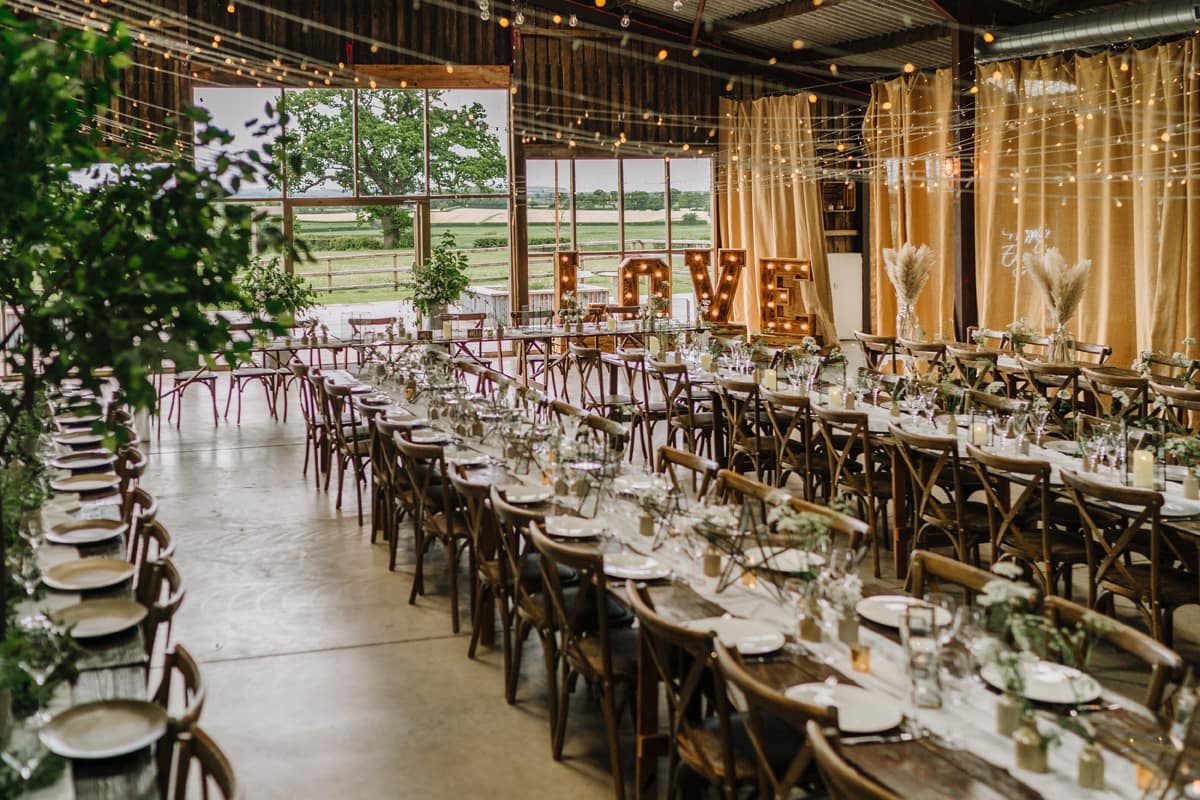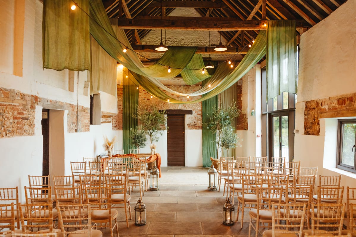 Here, you can rest assured, as this exclusive-use venue comprises several connected barns, meaning your day flows beautifully without any awkward changeovers. With incredible natural light, cosy corners, and a mezzanine DJ perch, it’s the ultimate choice for countryside celebrations that feel uber-relaxed, stylish, and truly unforgettable.