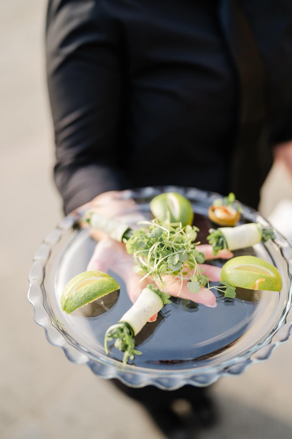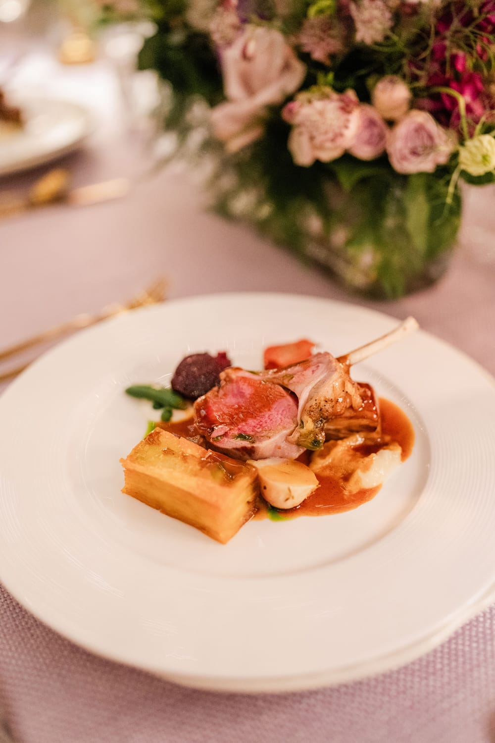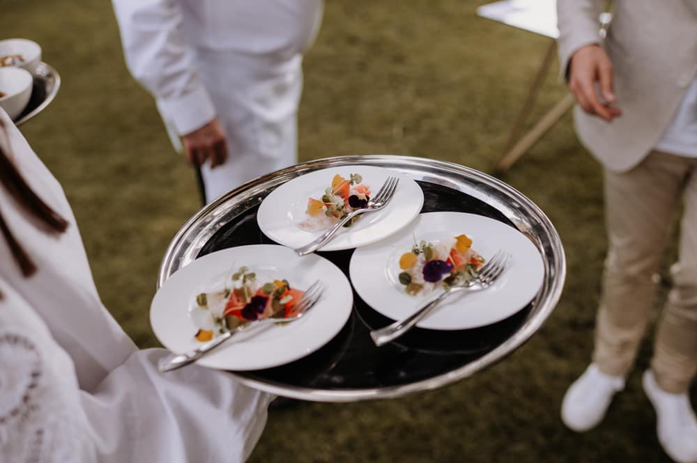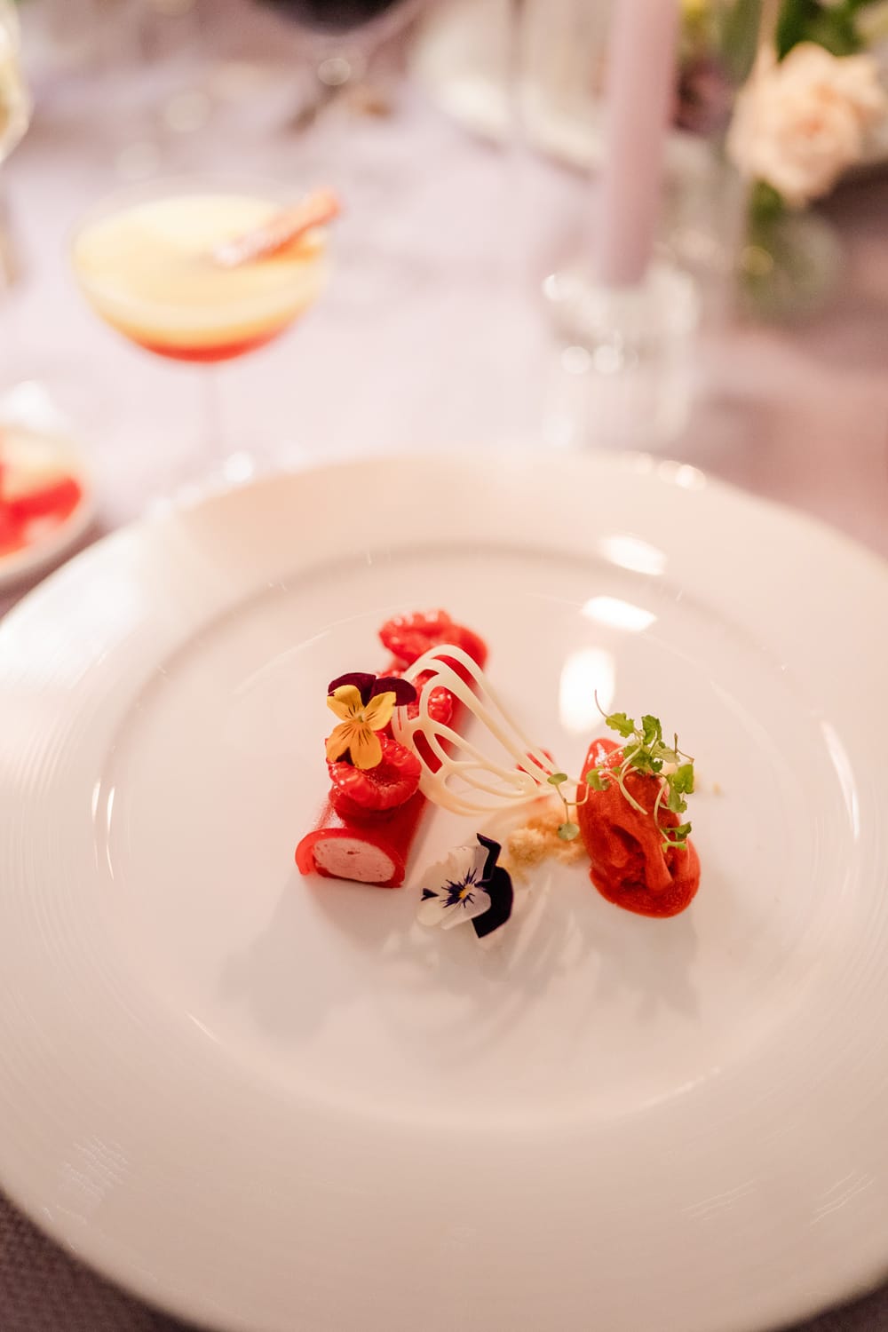 Let’s move on to the food, my favourite part of any trip, holiday, event… day! From the moment we were introduced to Caswell Kitchen during our welcome drinks, it was clear that their approach to food and hospitality as a whole was nothing short of exceptional. Not only do they place a strong emphasis on seasonal food, working tirelessly to match the menu with the environment, but their dedication to understanding what couples want is evident in how they approach menu planning. Rather than offering rigid, pre-set options, they say their menus are simply a starting point, working closely with couples to craft bespoke culinary experiences that reflect the couple’s tastes and preferences.