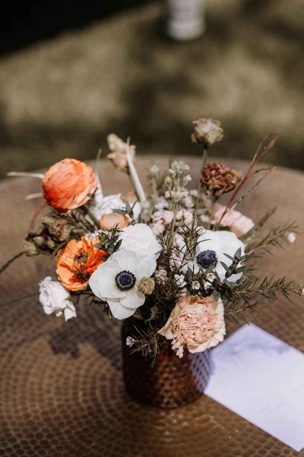 After checking into my room in one of the venue’s homely, light-filled guest cottages, it was time to gather in one of Caswell’s garden spaces, a pretty, private lawned area that had only been used by the family until recently. It was such a beautiful, versatile space, which we all agreed worked so well for our intimate, relaxed welcome drinks that I believe they will continue to offer it to couples as an additional al fresco gathering space, should they wish to use it. I can just imagine garden games and informal, sociable welcome meals stretching well into the early hours here!