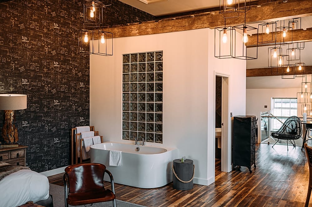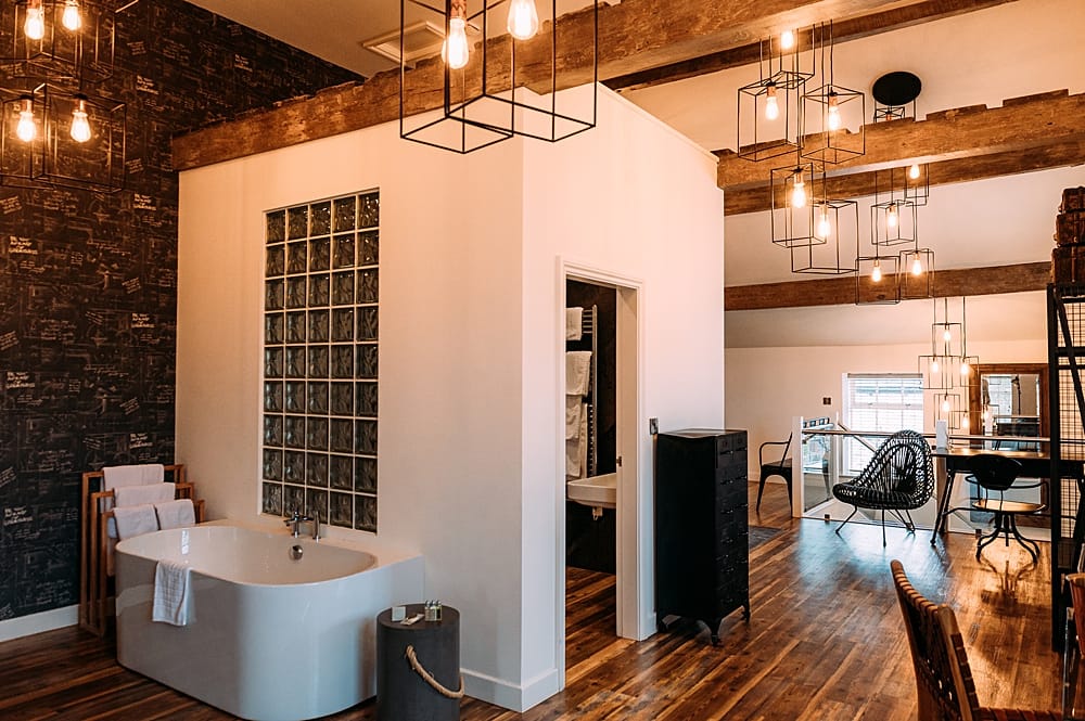 But today’s ‘Home Tour’ focus is the brand new Honeymoon Suite at Holmes Mill, aptly named the Penthouse due to being located on the top floor of the 1823 Spinning Block Hotel – the oldest building on the site converted into a stunning hotel with 39 individually decorated bedrooms.