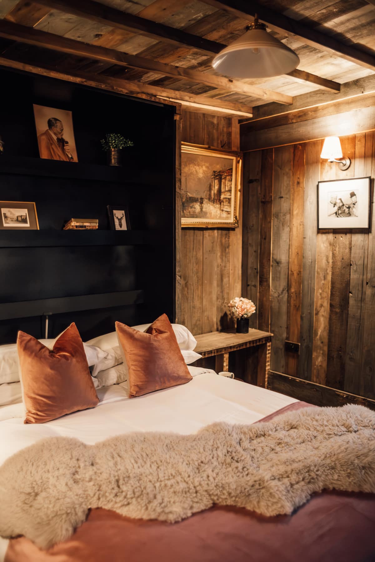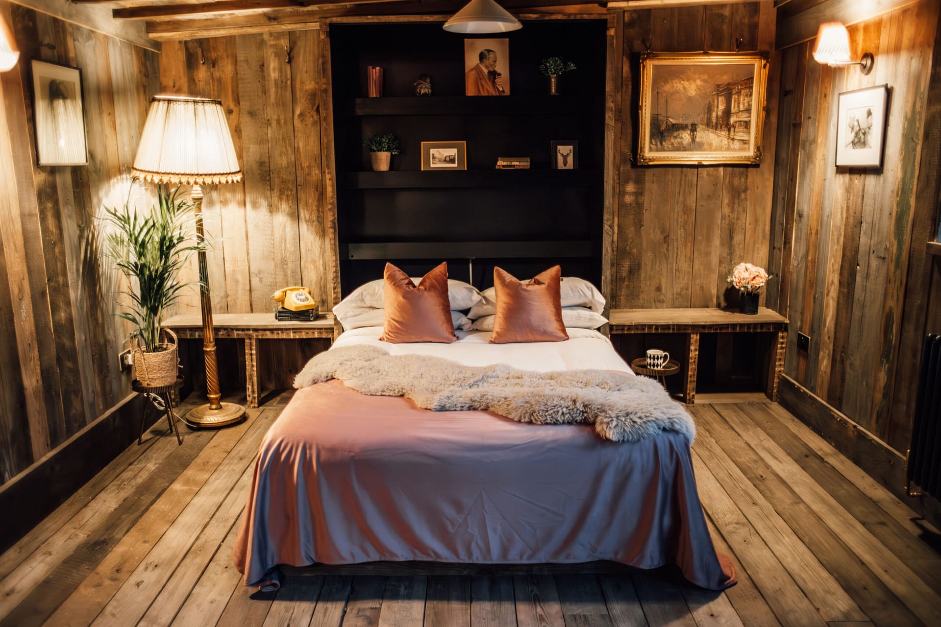 Expect a beautifully rustic design in keeping with the wider estate, and particularly the recent refurbishment of the main family Farmhouse. Made entirely of locally-sourced, aged, soft wood on the inside and clad with untreated larch on the outside, it’s immediately reminiscent of a cosy mountain lodge. Inside, you’ll find natural wood-panelled walls, rustic stone and tiling, and, of course, a warming wood burner was a must. But the star of the show is the pull-down bed – yours to use whenever you need it! Carefully selected soft furnishings add character and the signature home-from-home feel that Tythe is renowned for.