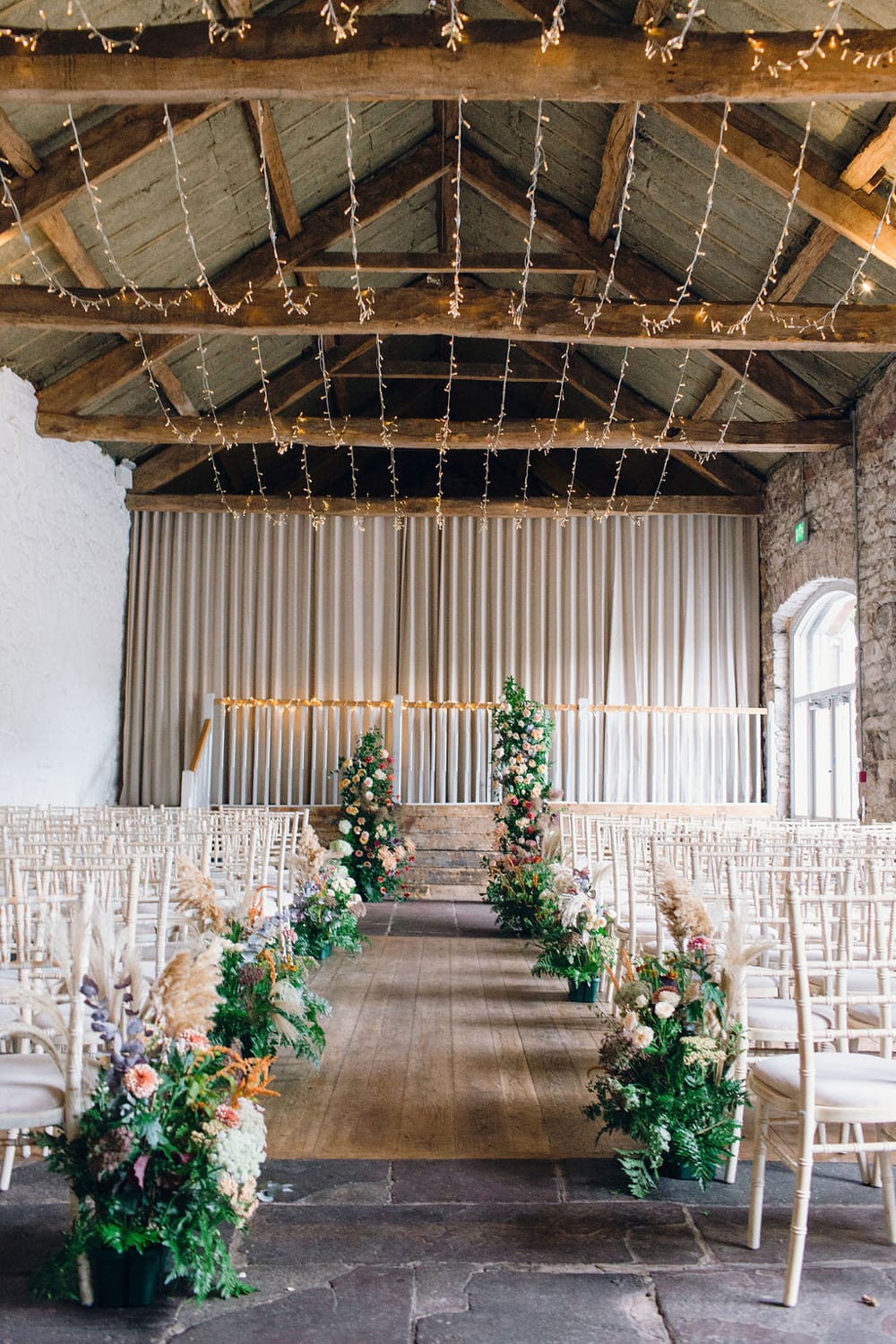 Understanding the significance of your wedding day, we tailor every aspect to meet your individual needs, offering a variety of ceremony spaces to suit any preference (or weather eventuality!). Whether you are planning an intimate gathering or a grand celebration, our versatile venue spaces, including the majestic Bank Barn for your reception, are adaptable to your vision. With its neutral palette and natural textures, Bank Barn provides a romantic and rustic backdrop for any wedding theme. It accommodates up to 150 guests with ample space for dining and dancing under a festoon-lit canopy.