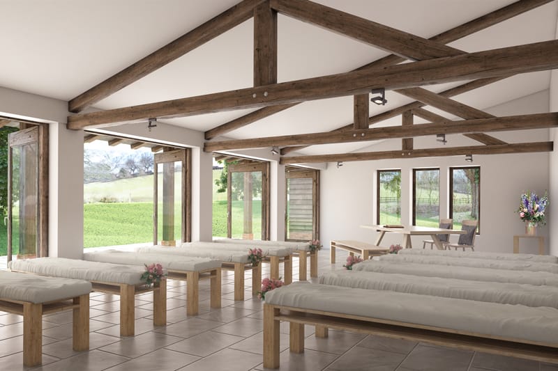Ashridge Great Barn is set on a working farm in the rolling Devon countryside. Nestled in it’s own valley, the barn is completely surrounded by green pastures and a sustainably managed, wildlife friendly woodland.
