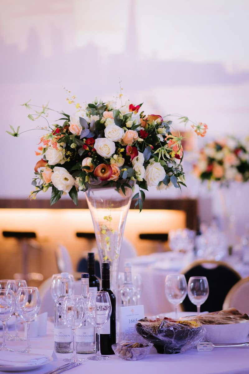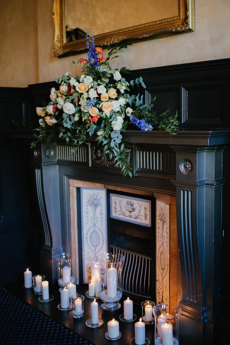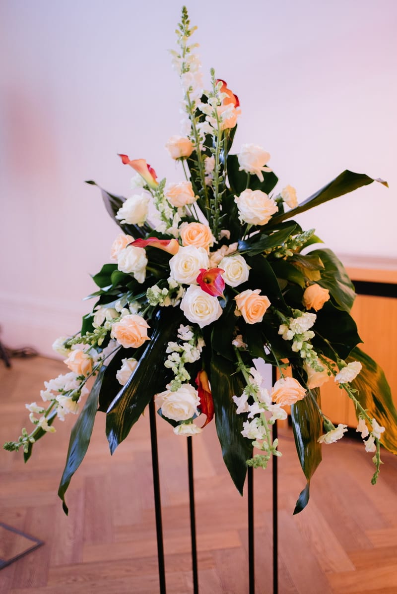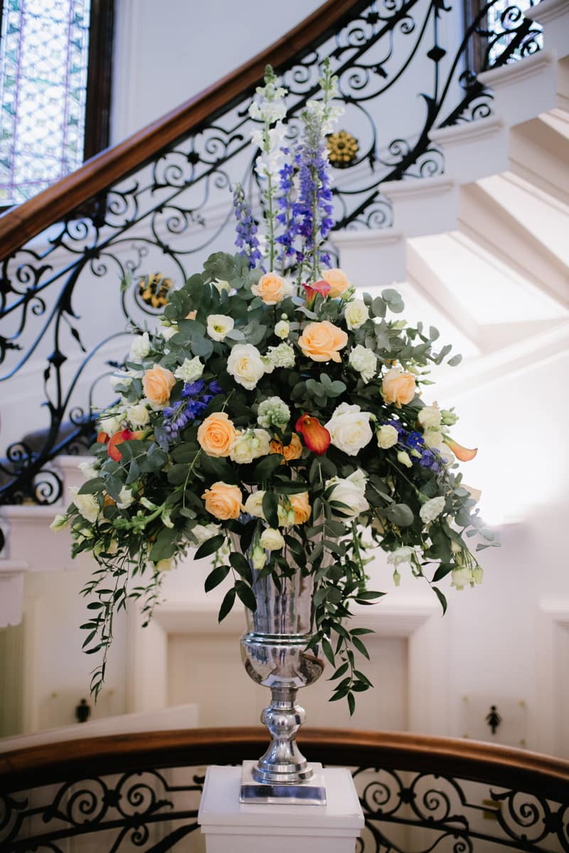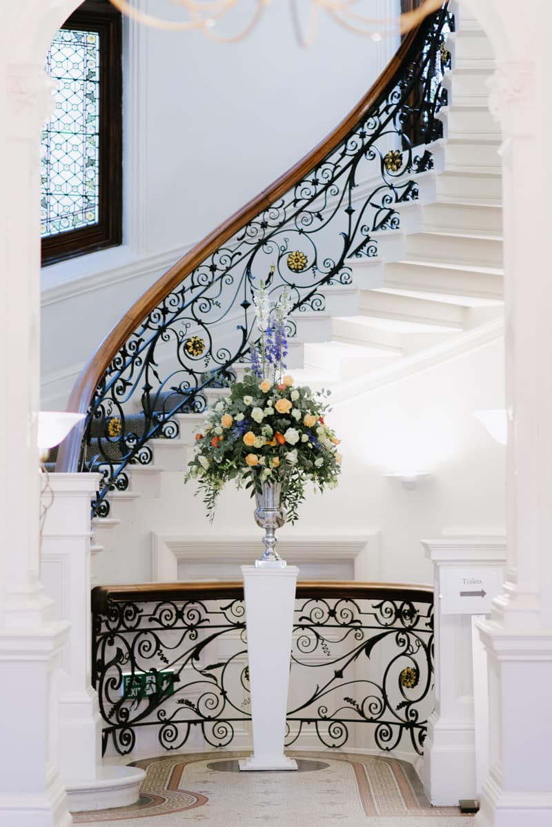 At the end of the entrance hallway is a grand spiral staircase that leads up to the Ceremony & Reception rooms. It was beautifully highlighted with a truly stunning display of florals by Poppy Designer Flowers.