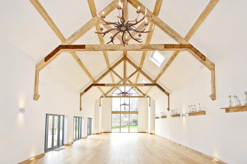 There are so many beautiful options for you to marry at Millbridge Court; the main ceremony hall has a vaulted ceiling and a stunning floor-to-ceiling glass walls looking out towards their lawn. The dining room features a stunning oak beamed ceiling and spectacular rustic chandeliers. The sweetest touch are discreet shelves lining the walls, perfect for floral displays. They also offer the ability for Wedding Ceremonies to be held outside under a beautiful oak Arbour, surrounded by stunning Surrey countryside.