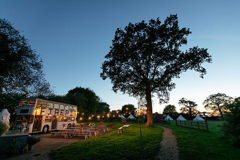 The Fire Pit Camp is a family-owned Glamping and fully licensed venue in Norfolk, with fields, eco-luxe clamping accommodation, al-fresco dining spaces, a retro-double decker bus and a super cool warehouse too.