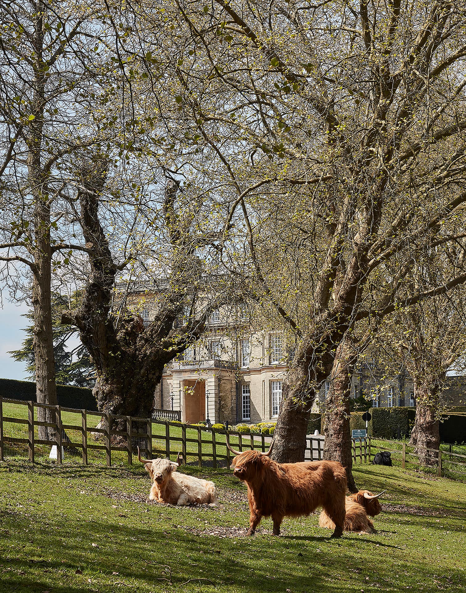 The next morning, en route to the house for a tour, we stopped to greet a few of the estate’s resident Highland cows — a photogenic welcome party, grazing unbothered beneath the trees. A charming (and very Instagrammable) reminder that this is still a working estate, not just a film set or wedding backdrop.