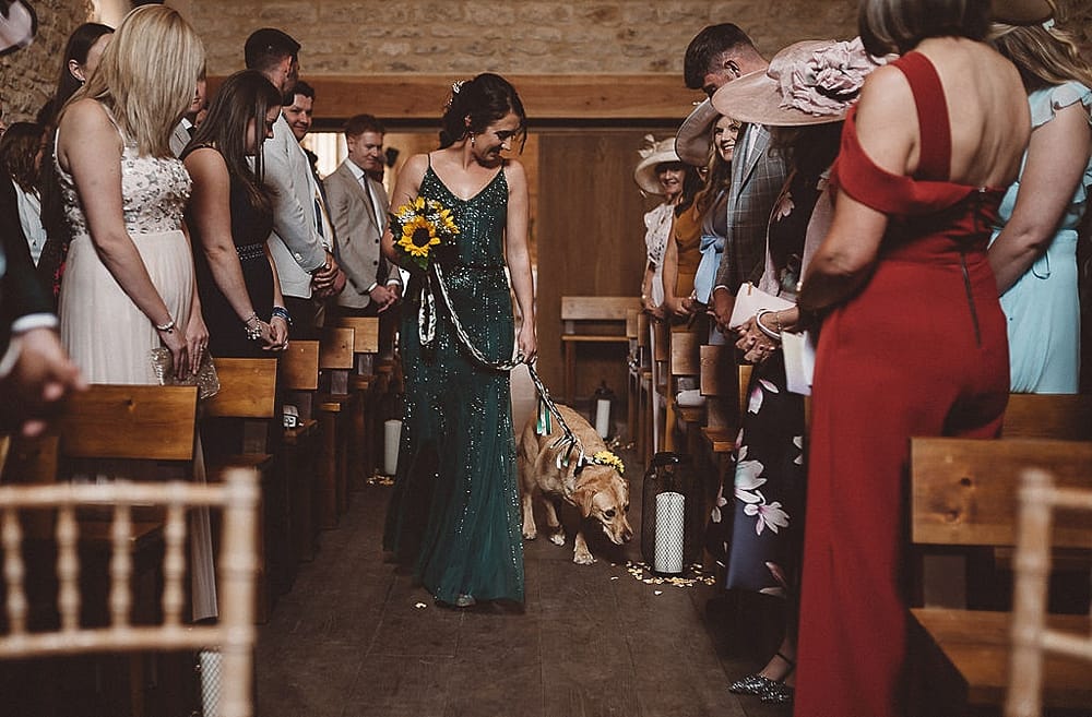 Lots of couples like to include their dogs as part of the ceremony for their wedding. From walking down the aisle to being a ring bearer, or just sitting with guests so they can watch their humans tie the knot – we’ve seen it all at Huntsmill Farm. Our 18th-century stone barn is dog friendly, so you can include your four-legged friends for your ceremony, with a stunning backdrop for your ceremony photos.