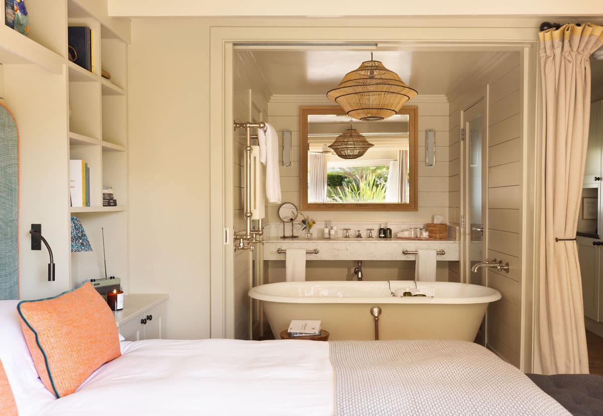 Behind the dunes at Camber Sands, The Gallivant feels more laidback Long Island than East Sussex. Inside, you’ll find a soothing palette of oat and chalk, a smattering of raffia lampshades, and beautiful-but-effortless styling that makes you feel instantly cooler just by checking in.