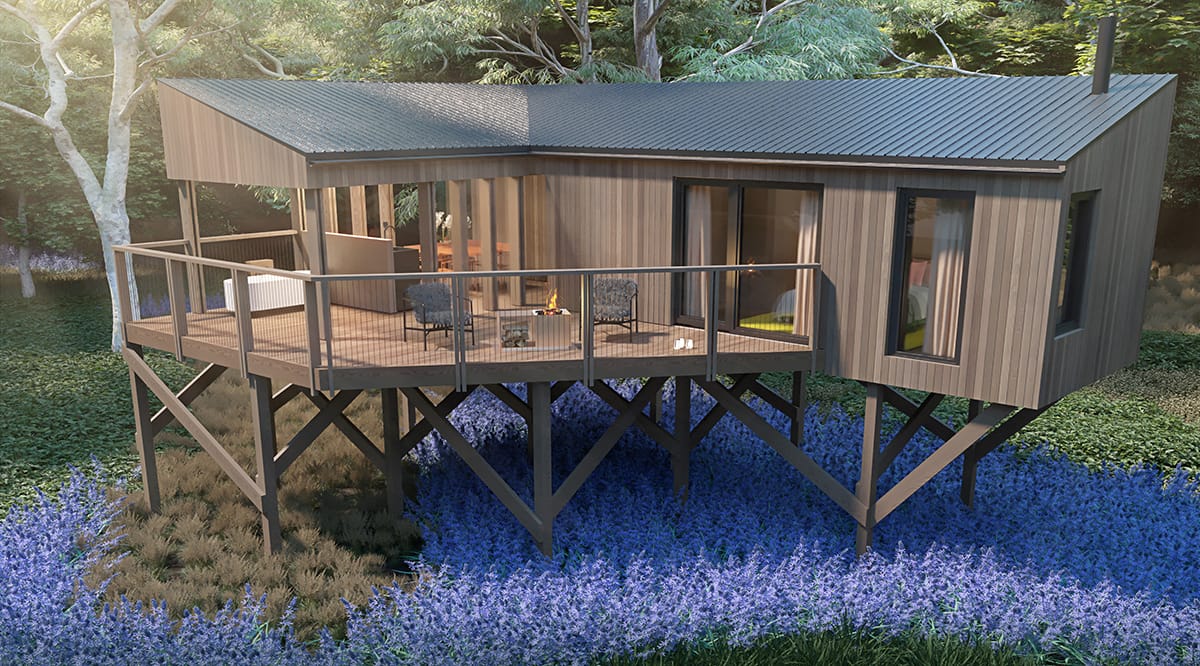 The lines between indoor and outdoor will be blurred by sliding screens, with an indoor/outdoor kitchen area and an outdoor bath. Each treehouse has a decked area facing a brand-new wetland feature. With seating for two and an elegant brazier, you can revel in your surroundings, be it a sunny summer afternoon enjoying a cold beverage or nestled amongst the trees with a glowing fire, keeping warm on a fresh autumn evening. When the treehouses open in late spring, there will be abundant bird life, flora and fauna for you to enjoy during your stay.