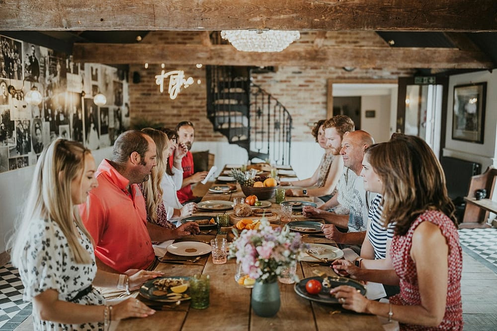 I wanted to replicate the attention to detail we are known for at Tythe. So often, it’s the little touches that people remember. I admit that I’m rather preoccupied with details! I am not content with just coming up with an idea and ‘look’ for a particular space, I will be relentless in my attempts to improve on it, identifying and exploring elements that might elevate the experience. The groom’s room, known as The Courtroom in a nod to it’s past life, is perhaps a good example. The challenge was that if the groom wanted to be part of the celebrations at The Farmhouse the evening before, and tradition dictates that the couple do not stay together the night before their wedding day, where would the groom sleep? The solution was to build a bespoke wooden bed that would pull down from the wall. On arrival day the room is set up as a bedroom, the following morning the groom tucks the bed away leaving a room that acts as a fantastic social space for the guys, complete with snooker table, leather armchairs, open fire, wood panelling and a bar.