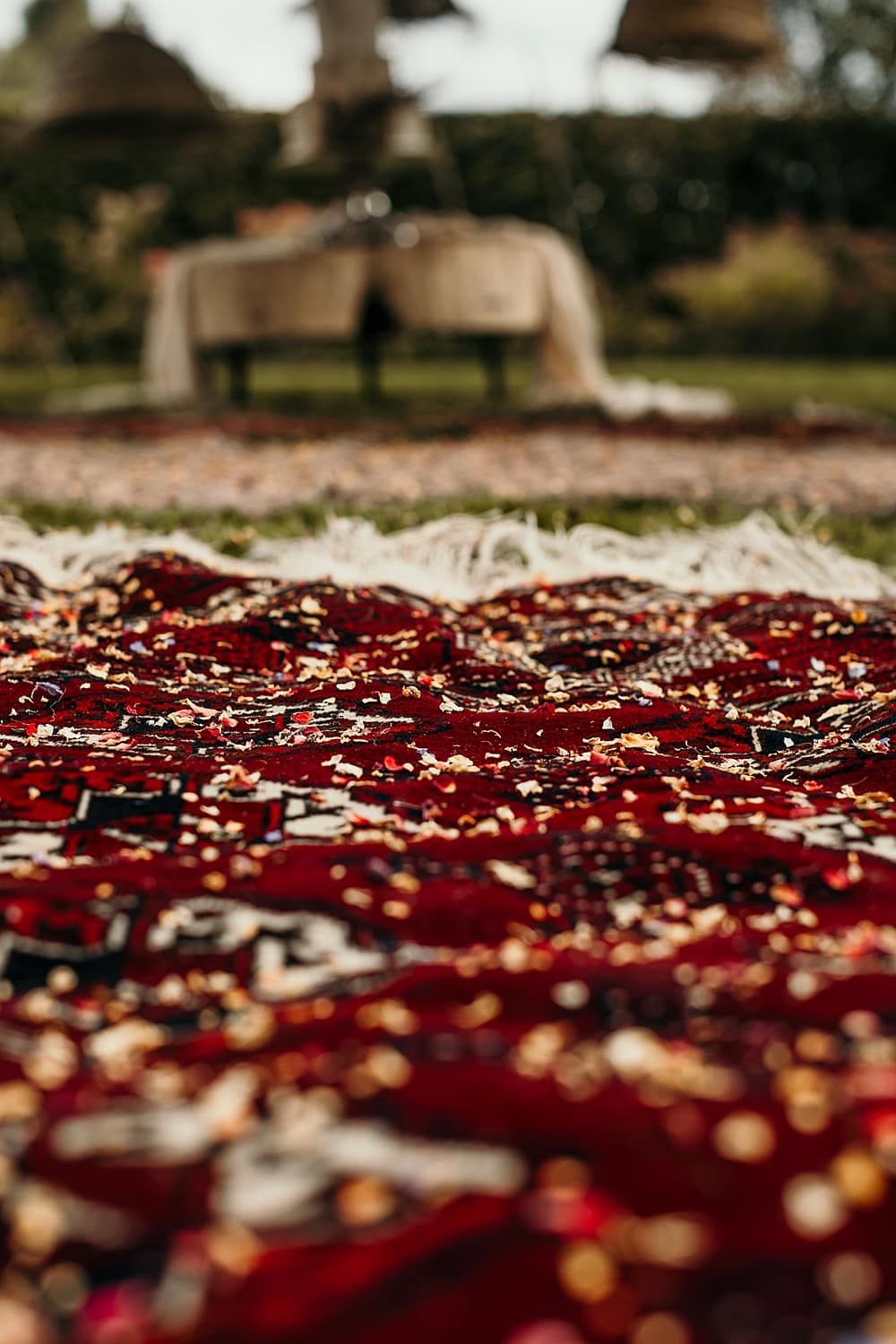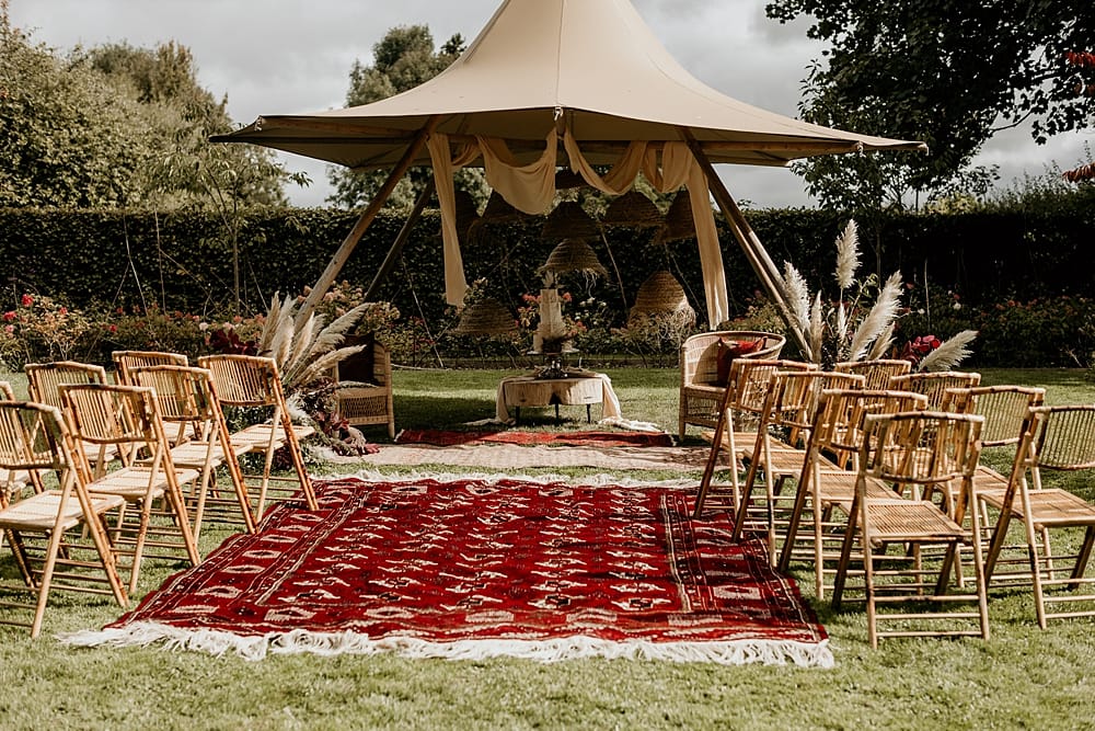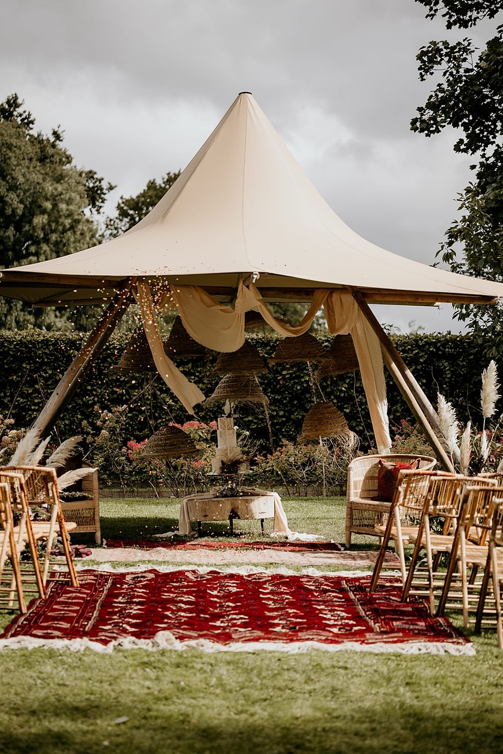 The suppliers collaborated beautifully to really bring this vision to life, with seagrass lamps hanging from the inside of the Tipi, sumptuous red carpets leading up the aisle, frothing florals framing the entrance and bamboo seating for the incoming guests. The result was a feast for the eyes, with focal points throughout and picture-perfect staging for the couples’ photos.