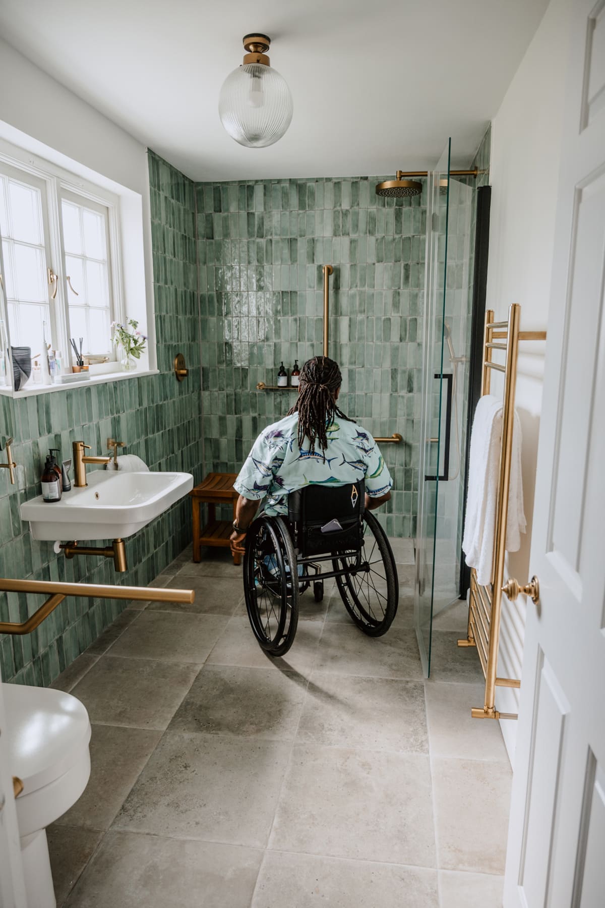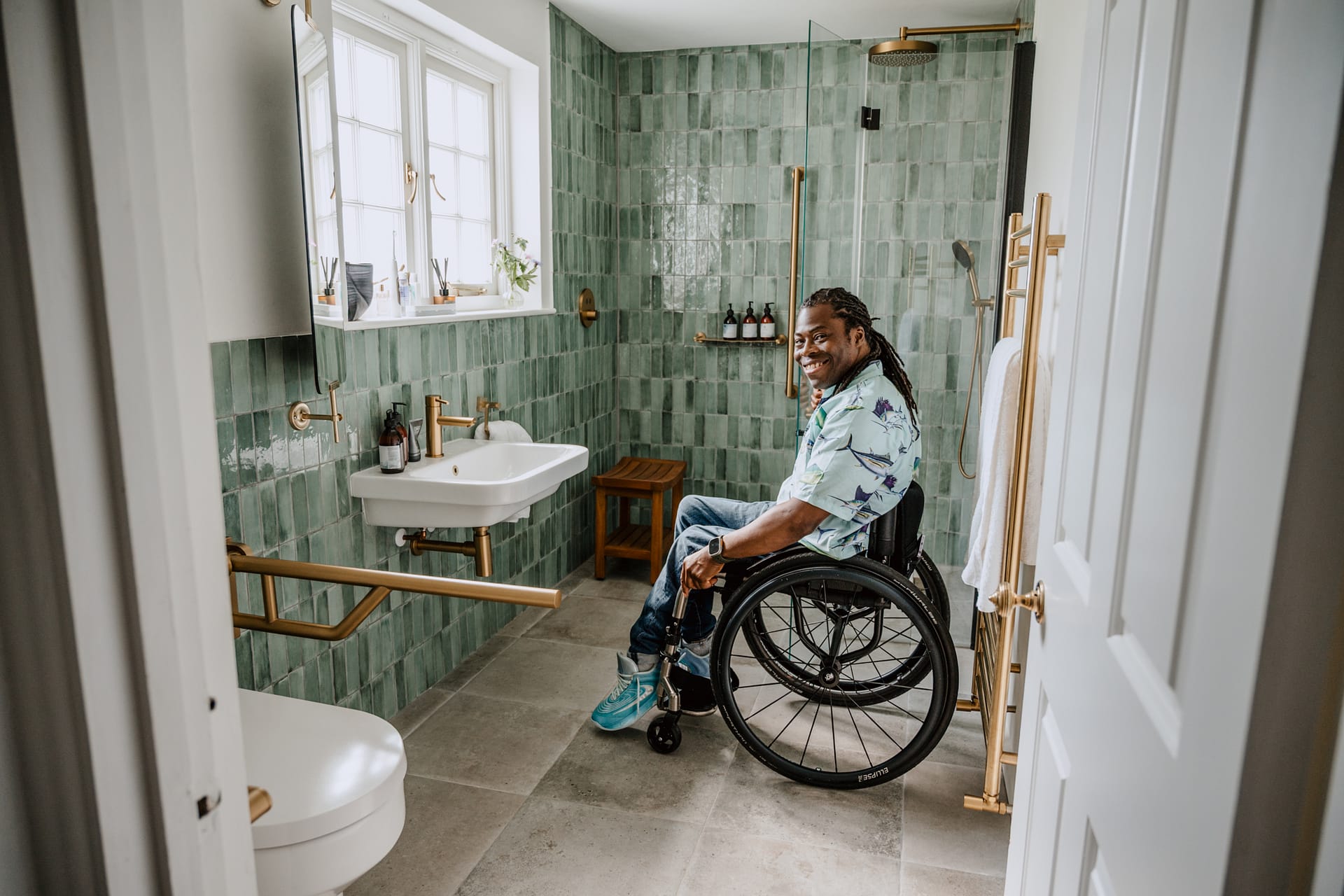 “Something that’s always forgotten in accessible bathrooms is the height of the mirror. So often you go to bathrooms and the mirror is so high, all I can see is the top of my head.” Ade summed up the key challenges in creating an accessible bathroom in a space used by multiple different guests with a range of different needs: “Accessibility is not about one-size-fits-all. That’s a real challenge because you’ve got so many different disabilities or people with different needs to cater for. It’s about trying to create something that works for as many different people as possible, and Treseren have done that really well.”