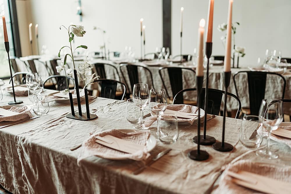 From that moment on their love of weddings has only grown stronger as they have continued to build and expand Upton one space at a time. The key interior style and inspiration running through the venue is rustic / contemporary Scandi. Embracing this vibe we have made features of the natural materials and elements within the buildings themselves – cobb, oak, glass, black ironwork fixings, and wooden beams. Enhancing these features gives the venue a stylish contemporary feel; a perfect meeting of modern architectural styling and rustic traditional roots, using the history of the farm (and its materials) as reference. We’ve used our own oak to build the outdoor ceremony arbour and our own stone from the quarry to restore the barn.