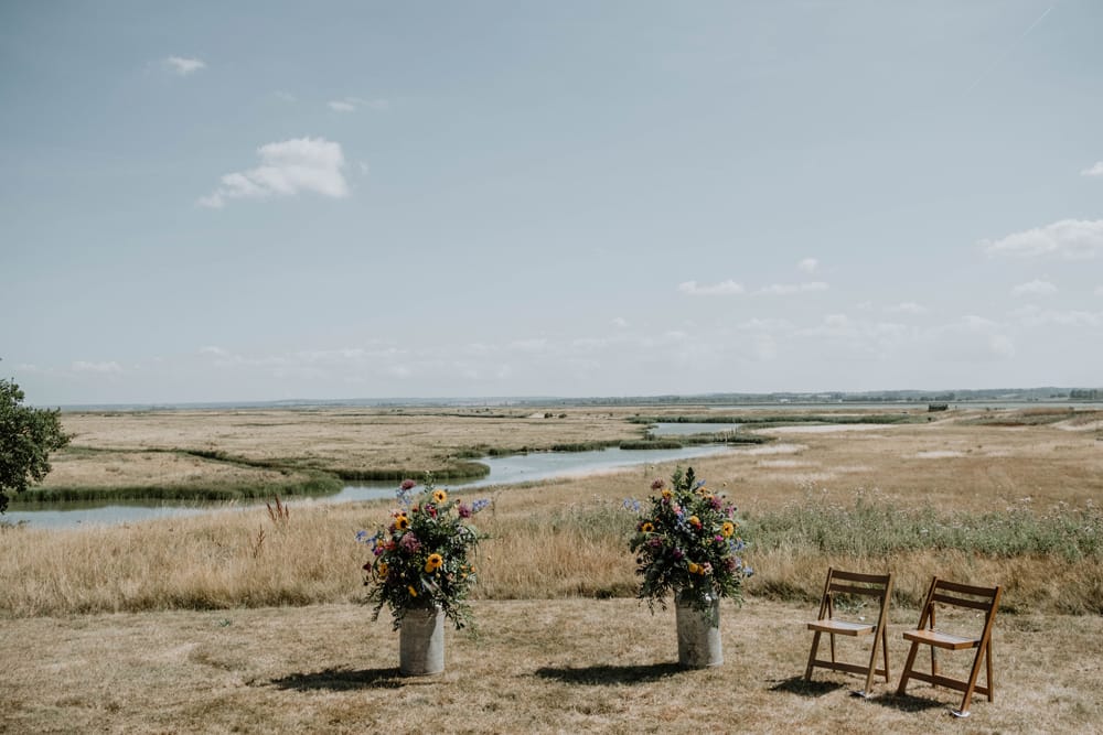 Tucked away on the Isle of Sheppey, just 50 miles south of London, is Elmley Nature Reserve, a 3200-acre expanse of marshland. Elmley has a magical, end-of-the-world atmosphere, albeit—quite literally—with added creature comforts. As well as being a glorious place to immerse yourself in nature, it’s also home to a versatile wedding venue which looks gorgeous as an empty shell, or you can go to town and make the space your own.